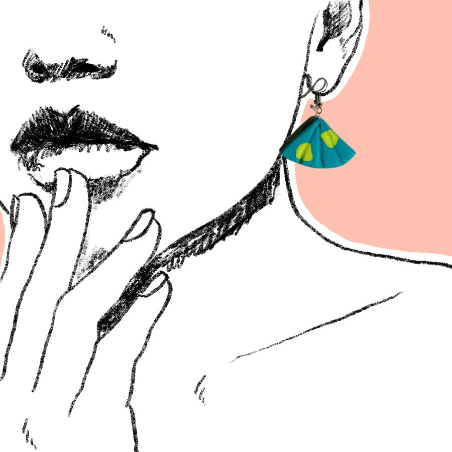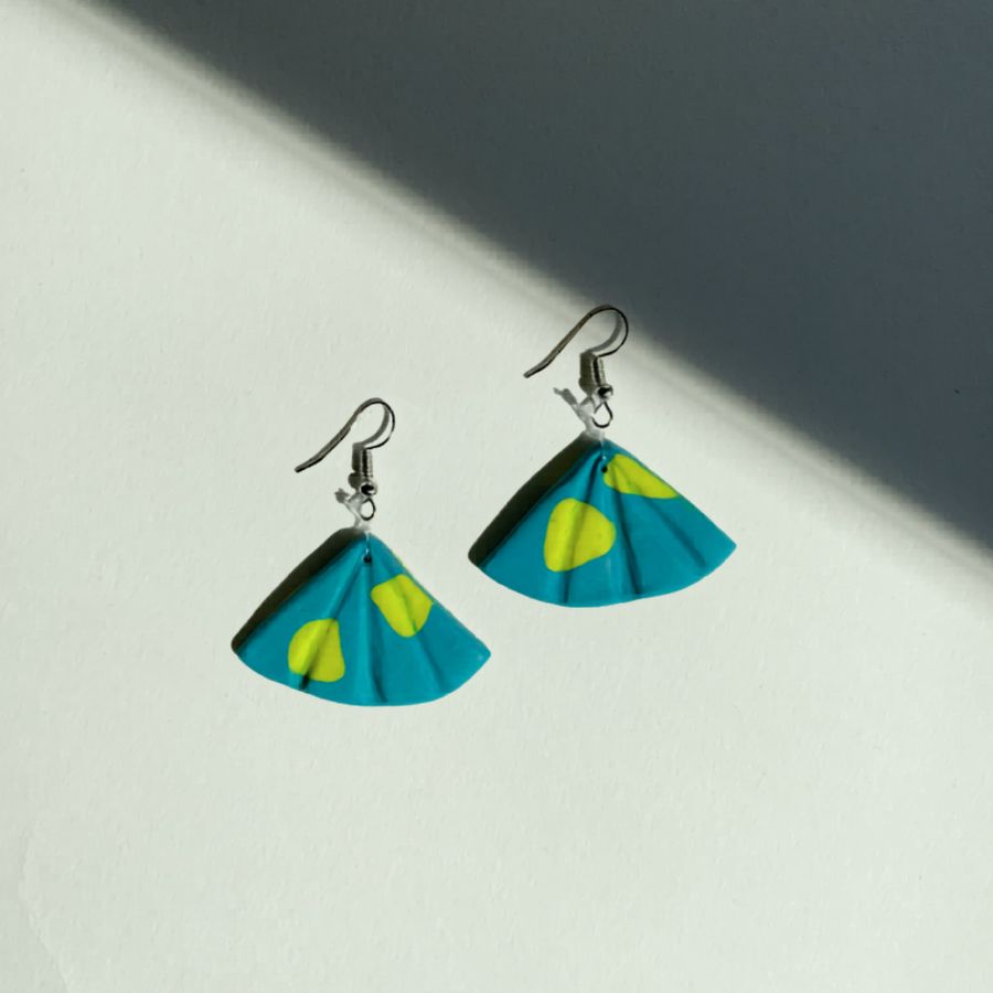 Naušnice Green Fan su lagane i unikatne naušnice od polimerne gline u tirkizno-zelenoj boji s neonskim točkama. Ručno izrađen modni dodatak (5 cm) koji unosi svježinu i moderan dizajn u svaki outfit.