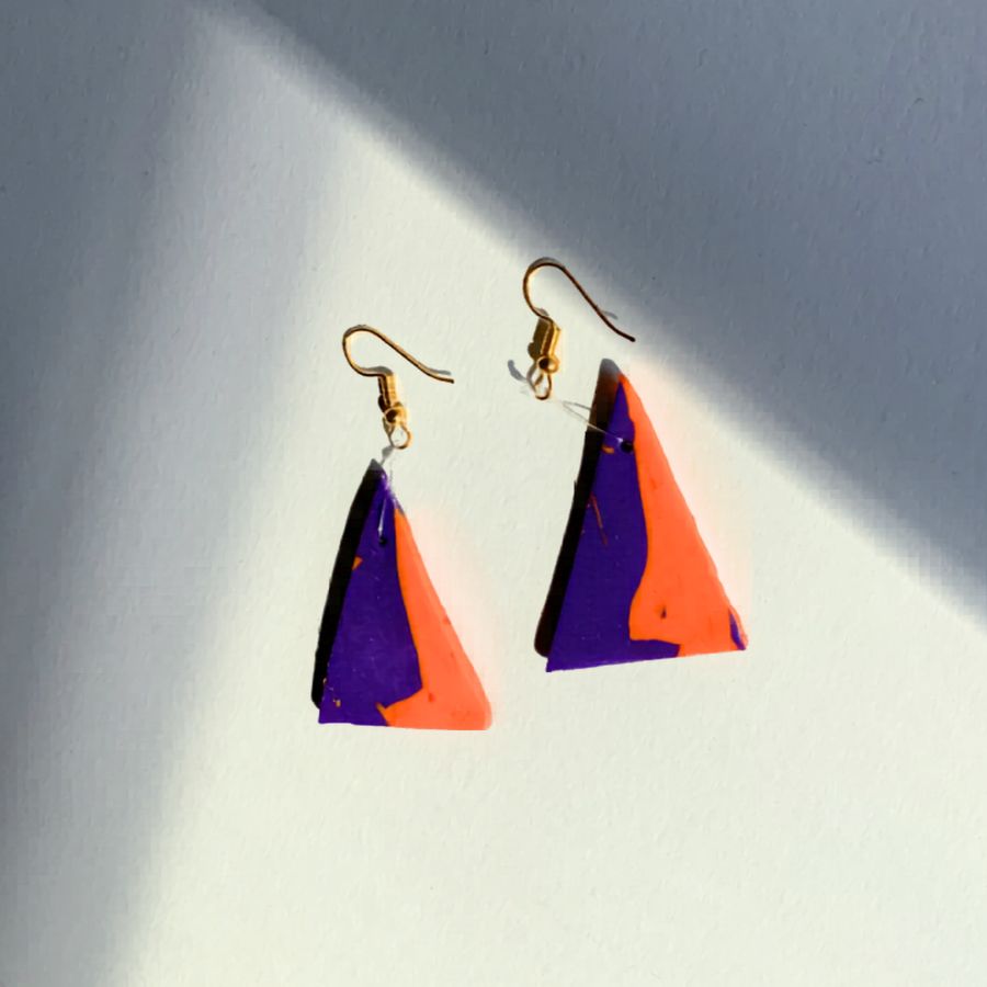 Dodajte svom stilu oštrinu i modernu eleganciju uz Naušnice Piramida. Ovaj model trokutaste forme spaja dvije komplementarne, a opet kontrastne boje – duboku ljubičastu i energičnu narančastu. S duljinom od 6,5 cm, ove naušnice vizualno izdužuju lice i čine savršen fokusni detalj svake modne kombinacije, od poslovnog casual izdanja do večernjeg izlaska.