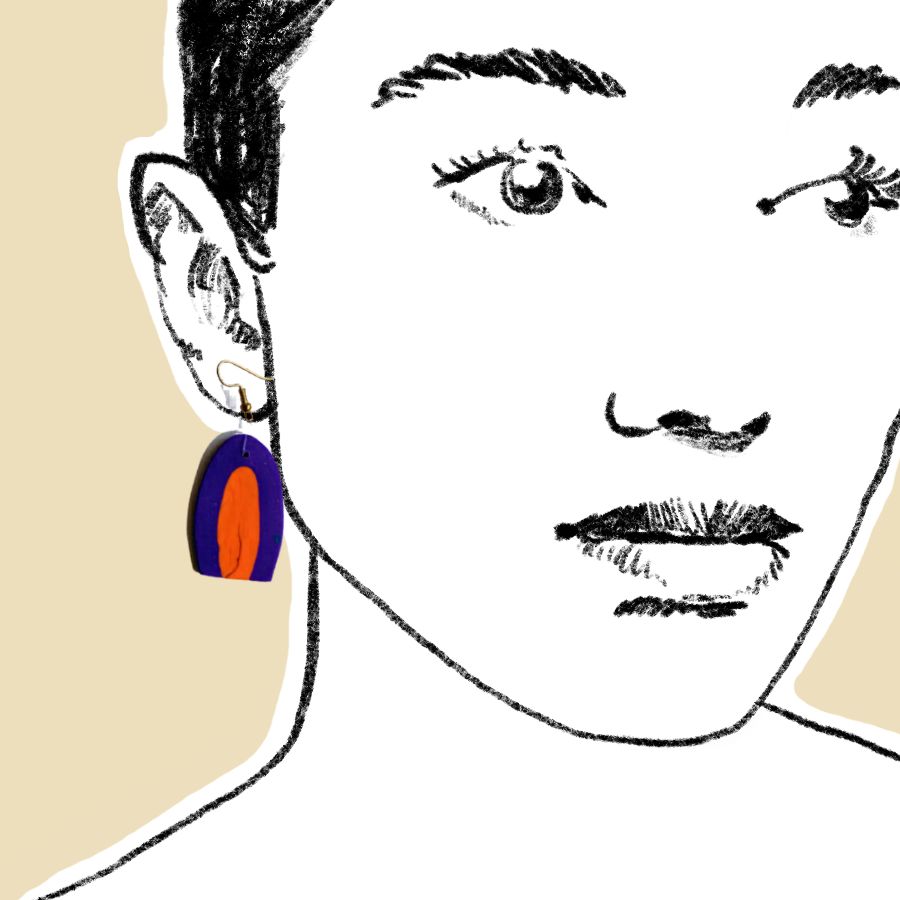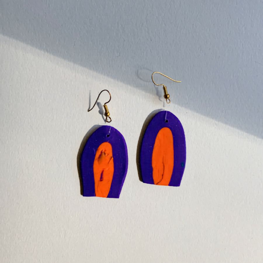 Istaknite svoju kreativnu stranu uz Naušnice Šapa, upečatljiv model koji spaja modernu apstrakciju i smjeli kolorit. Ove ručno rađene naušnice od polimerne gline dolaze u vibrantnoj kombinaciji duboke ljubičaste i jarke narančaste boje, oblikovane u prepoznatljivu, zaobljenu formu koja podsjeća na organske motive. S duljinom od 6,5 cm, one su idealan statement komad koji svakoj odjevnoj kombinaciji daje dozu umjetničkog karaktera.